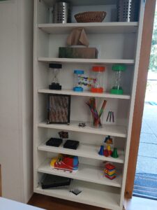 Alle Bereiche des Gruppenraums sind so eingerichtet, dass sich alle Spielzeuge und Materialien auf Kinderhöhe befinden und somit den Kindern die selbstbestimmte Zugänglichkeit gewährleistet wird. Zudem wird mithilfe eines Ordnungsrahmens durch Fotos und/oder Piktogramme der vorgesehene Platz und die Verfügbarkeit sichtbar gemacht.